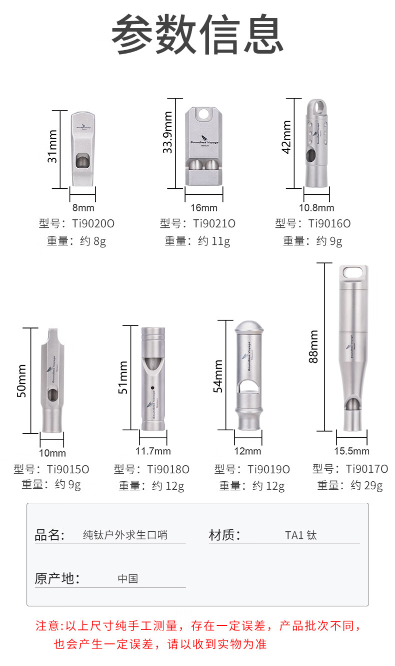 全新的哨子,包装扎实,发货速度快!必唯(BOUNDLESS VOYAGE)品牌,纯钛户外求生口哨,便携,精致,野营救生哨,120分贝,物美价廉,值得购买!