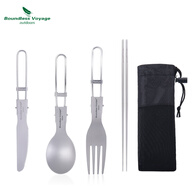 必唯(BOUNDLESS VOYAGE)纯钛户外筷子空心露营高端折叠筷野营餐具便携防滑家用加长不起霉 2节筷子+折叠餐刀+折叠叉子+折叠勺子