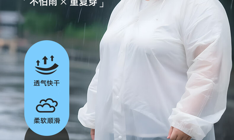 雨衣材质非常好,特地找的大码的买,穿着很宽松不闷,最近一直下雨,雨衣就很方便了,质量也很好,不像一次性的,可以用好多次