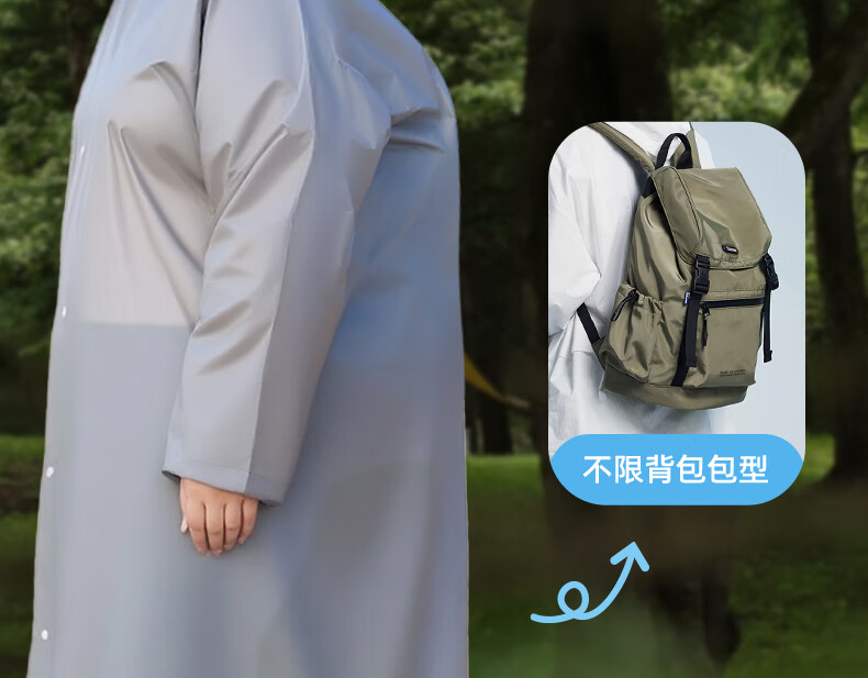 一起出去玩穿的,确实挺宽松的,同门180斤也能穿,后面还能背个书包,防水效果也挺好的,防风防雨,包装也很便携,放在包里很轻,不占地方,实用性很高,不错