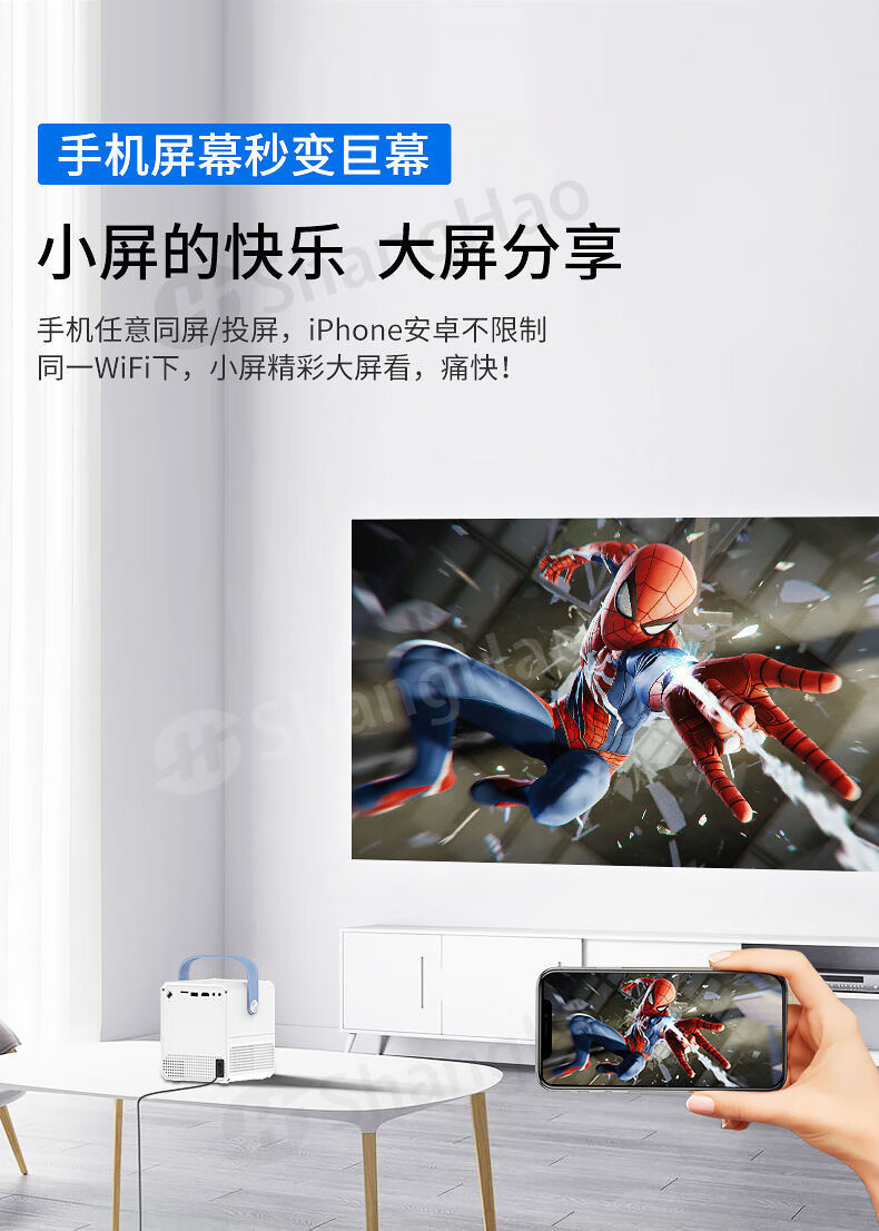 2025款超高清智能投影仪家用卧室办公投墙手机投屏投影机 基础版【老款仅手机同屏】