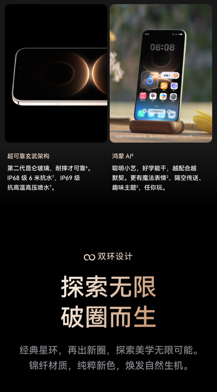 华为(HUAWEI)Mate 80 Pro 第二代红枫影像 鸿蒙AI 户外探索模式【12/24期分期】华为直屏鸿蒙手机 全新未激活 雪域白 16GB+512GB 官方标配