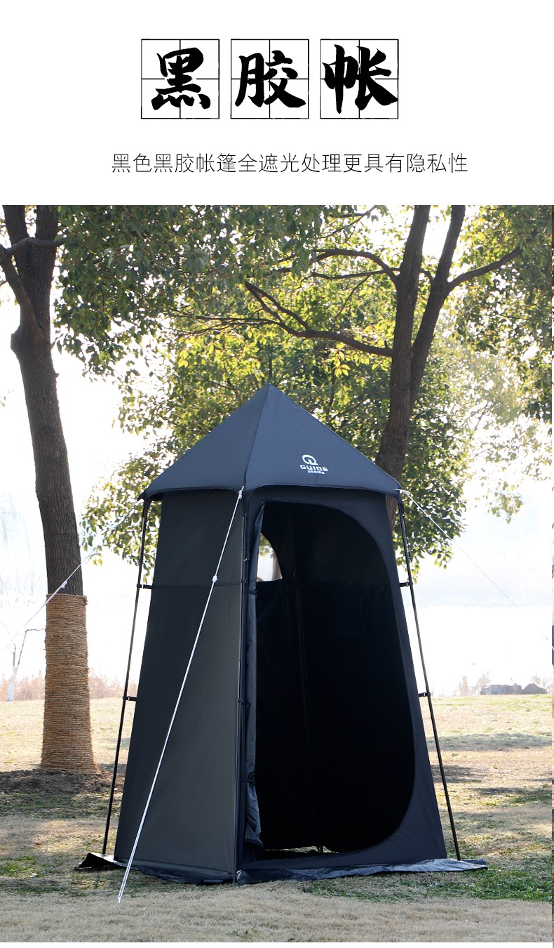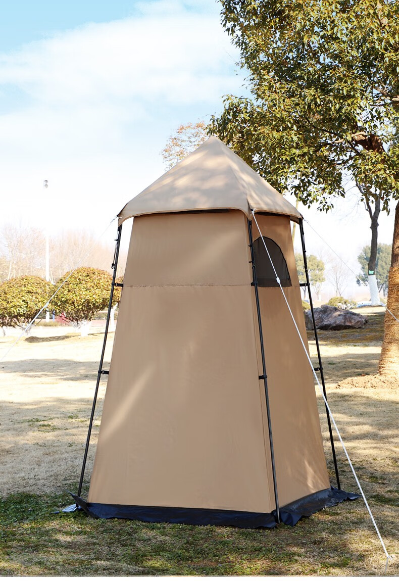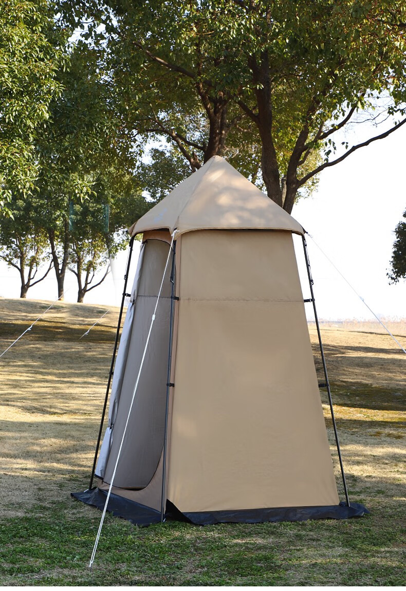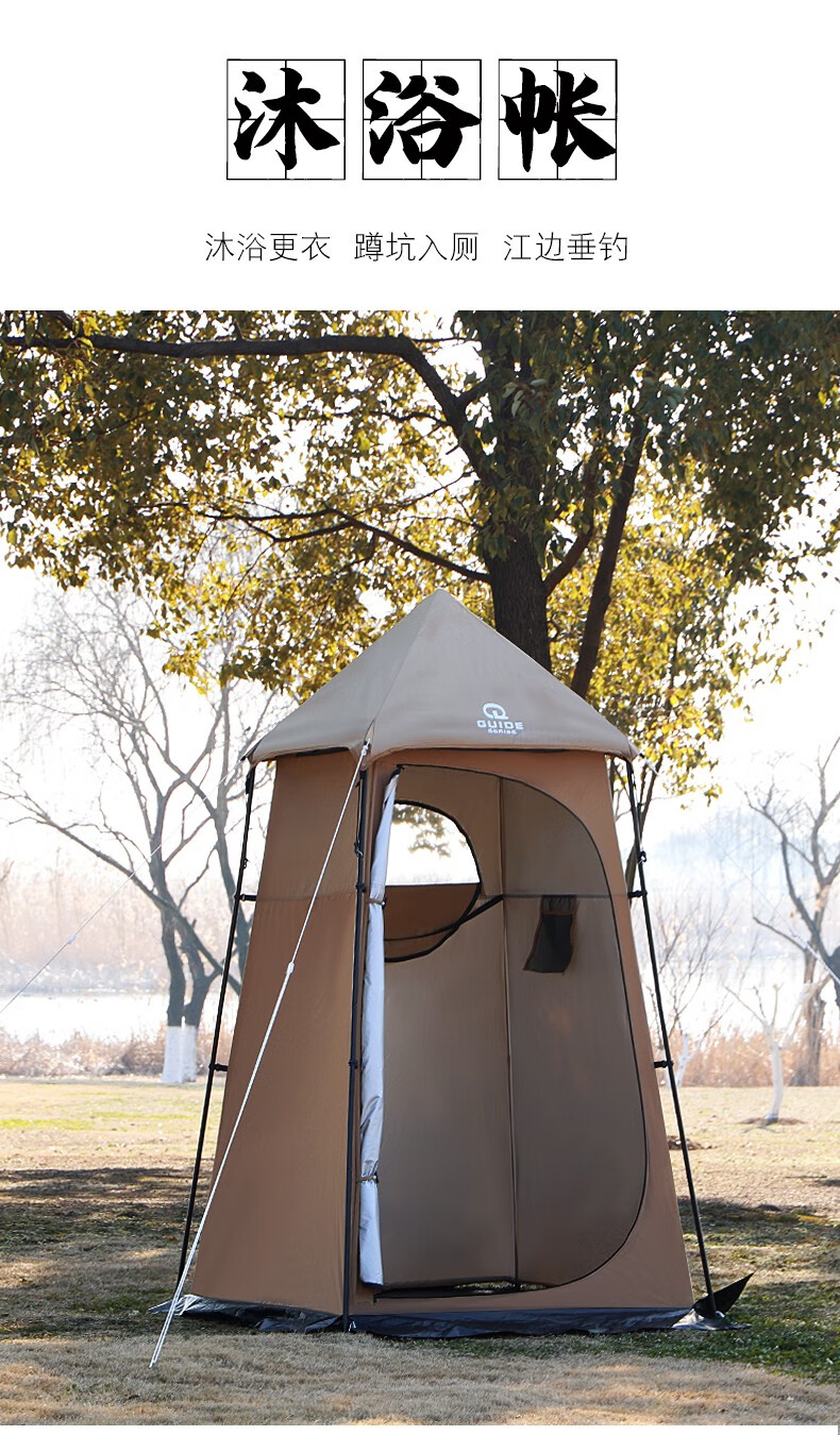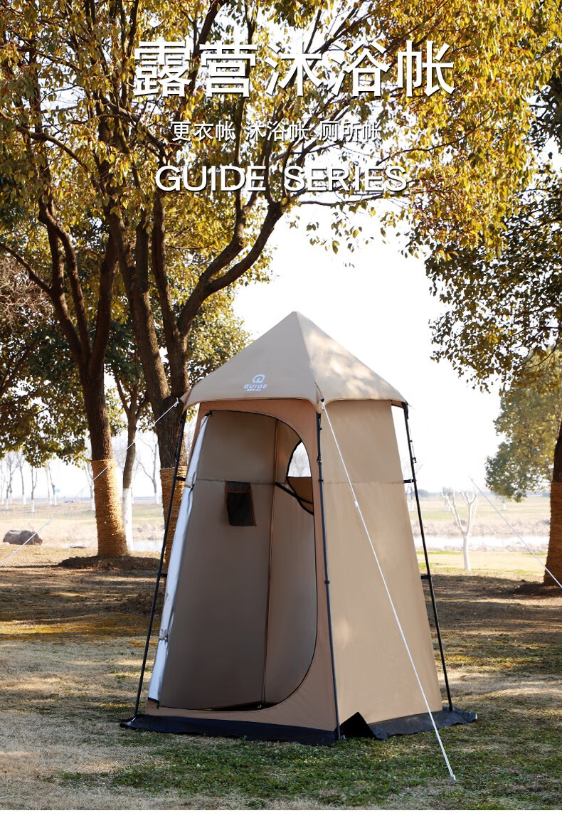 Guide Series单人户外洗澡帐篷移动厕所全遮光黑胶更衣罩换衣服淋浴罩洗浴账 (黑胶大号款)沐浴帐--卡其色