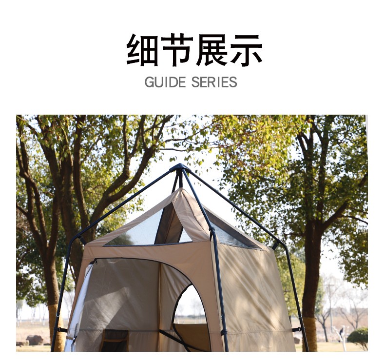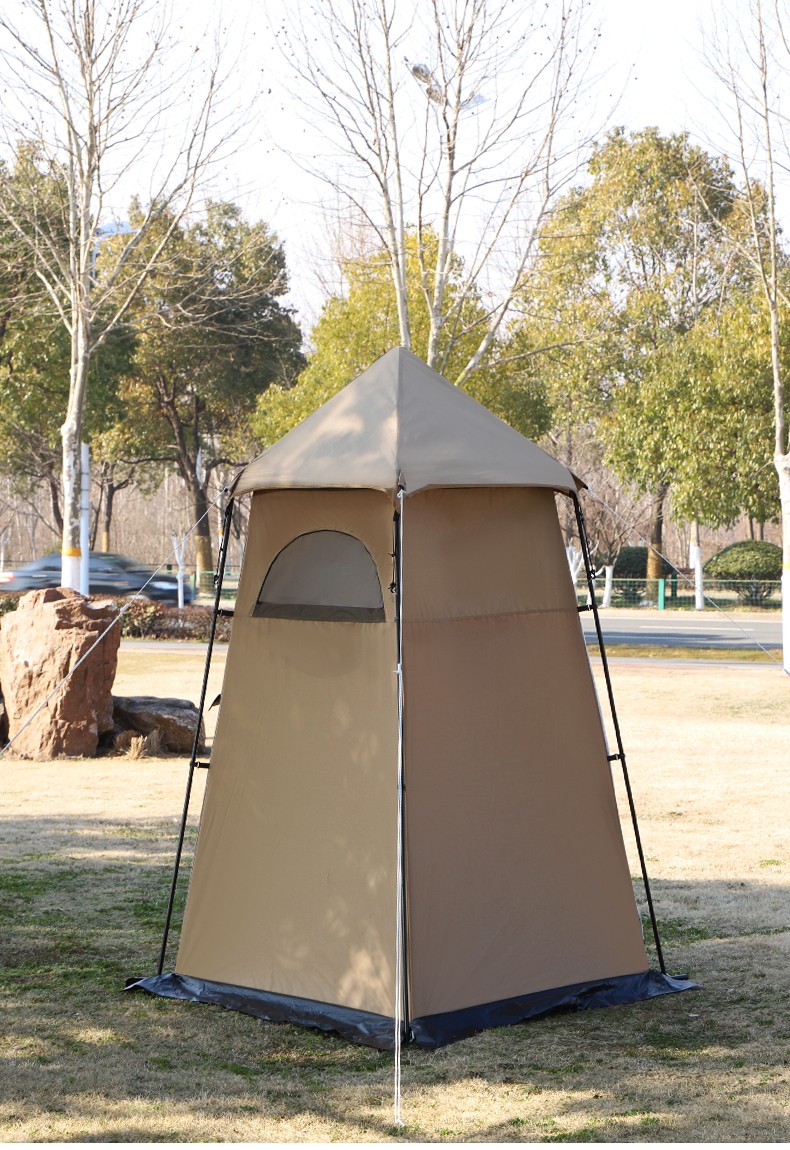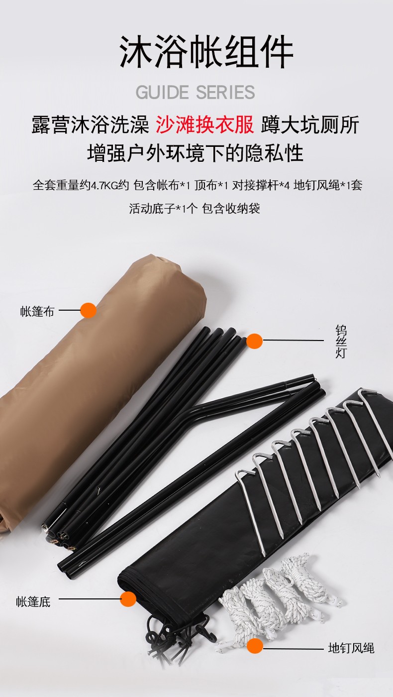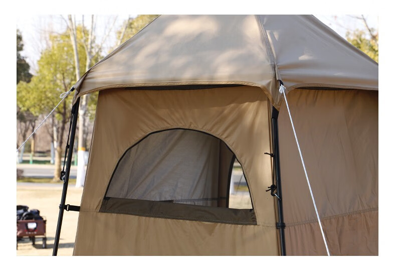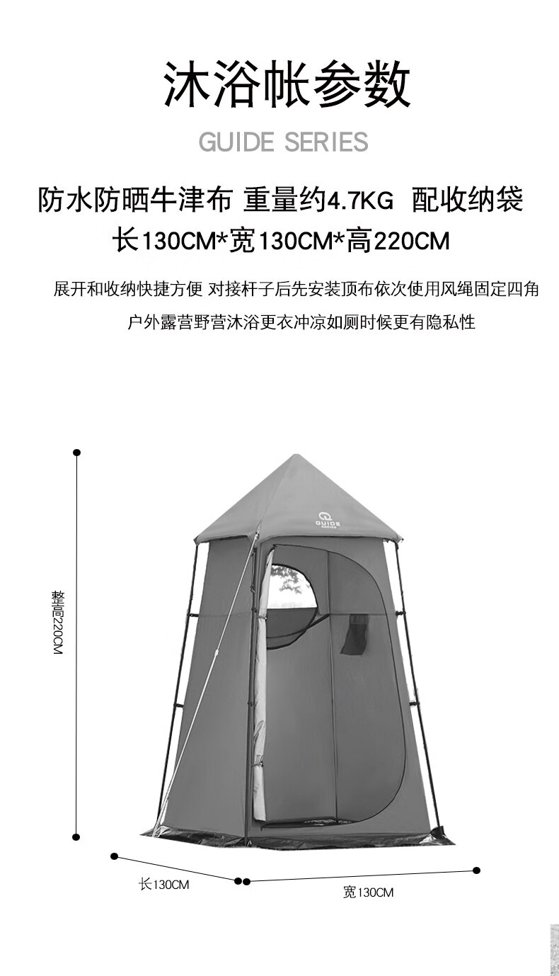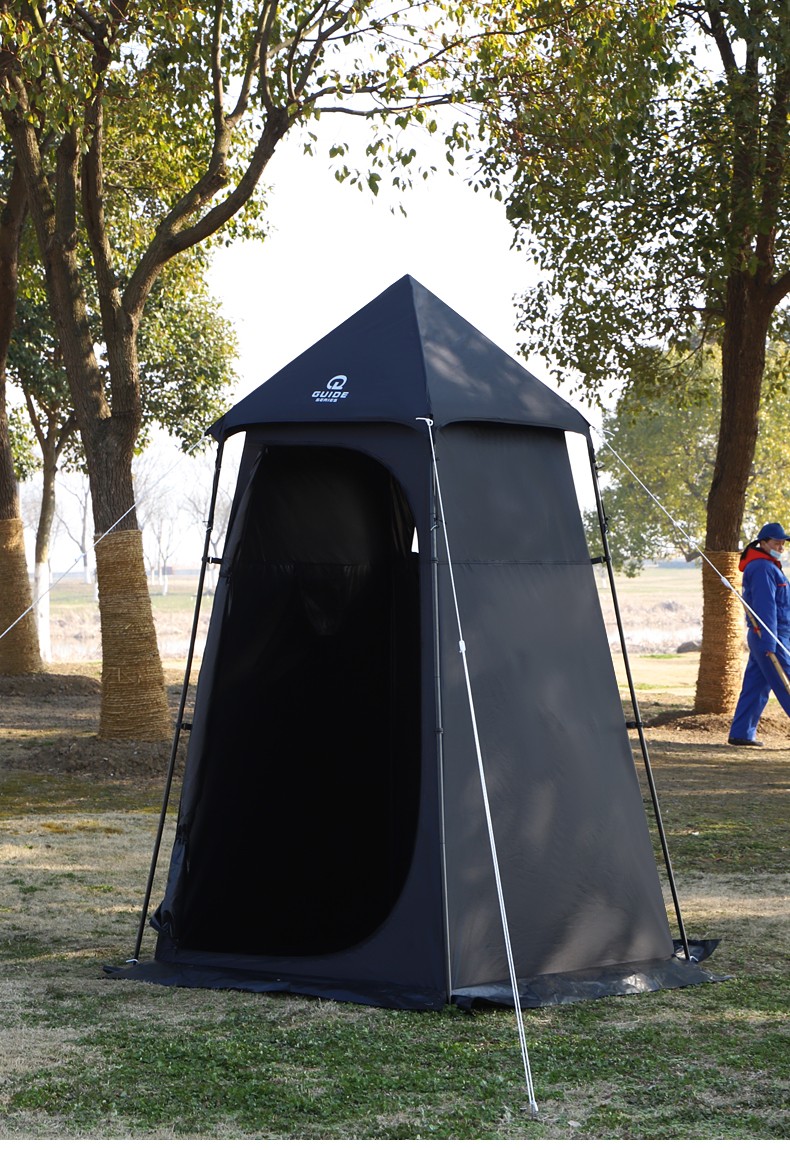 Guide Series单人户外洗澡帐篷移动厕所全遮光黑胶更衣罩换衣服淋浴罩洗浴账 (黑胶大号款)沐浴帐--卡其色