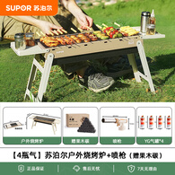 苏泊尔户外烧烤炉木炭烧烤架碳钢便携折叠式烧烤碳烤肉烤串烤炉子 苏泊尔户外烧烤炉+5斤碳+喷枪+YG气罐*4 58*20*37cm