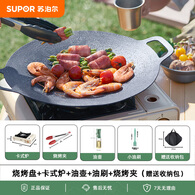 苏泊尔煎烤盘户外不粘烤肉盘铁板圆形煎肉锅子家用卡式炉露营烧烤盘-34 烧烤盘+卡式炉+油壶+油刷+烧烤夹