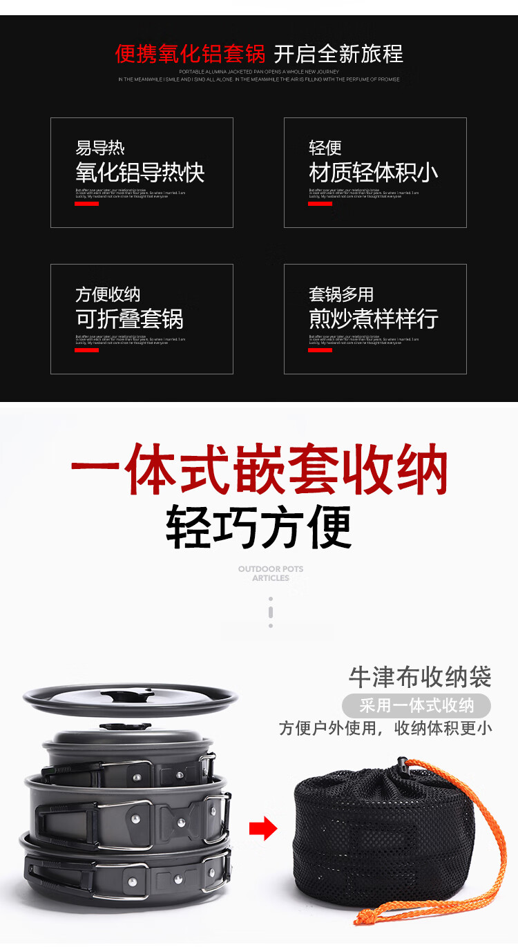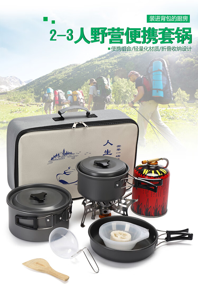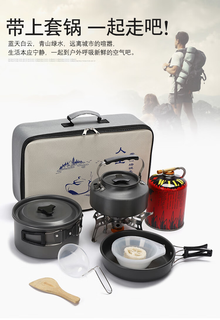 日本户外野炊露营便携炊具锅具猛火煤气灶燃气炉烧水壶炉具折叠灶 布包防风炉头大罐锅具款式四