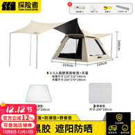 探险者帐篷天幕户外便携折叠黑胶帐篷防晒遮阳防水野营露营装备全套 3-5人黑胶四面帐篷+天幕+双垫