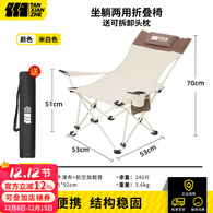 探险者折叠椅户外躺椅便携式单人靠背露营椅子休闲椅扶手椅折叠午睡床 米白-加固防翻躺椅【一提收拢】