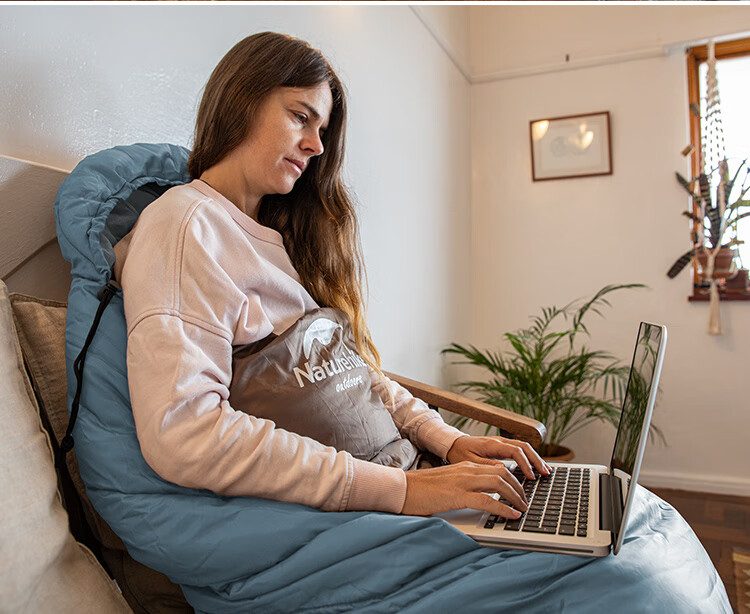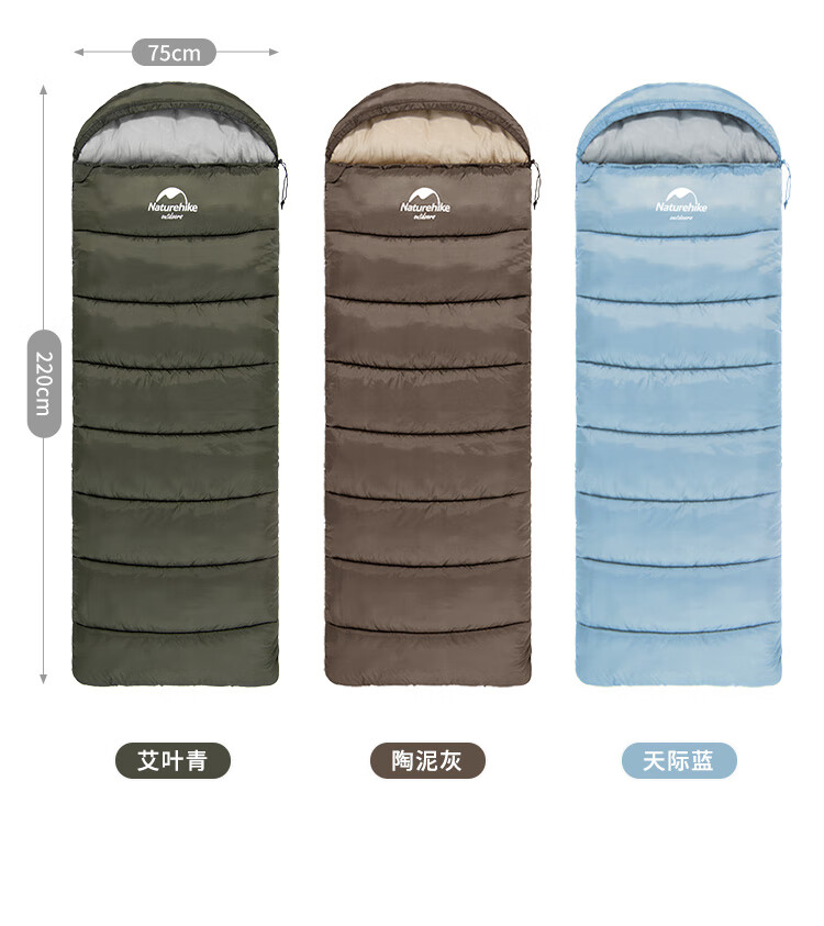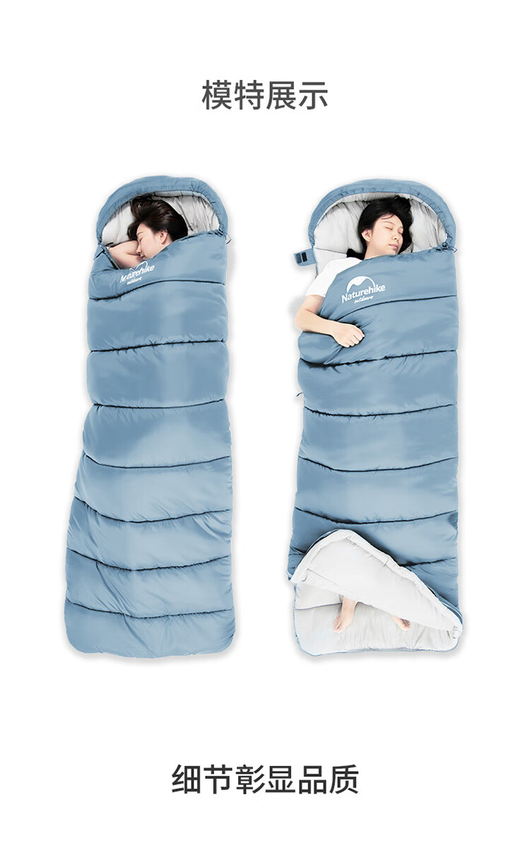 NatureHike挪客日暄信封带帽增温棉睡袋户外露营成人加厚可拼接 晚波蓝/HU250/常规款/左