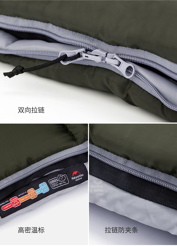 现在绿营越来越追求简单现在露营越简单越好,350 这个型号很保暖,用起来放心,因为之前买过,所以这次给同事又买了几个一如既往的品质而且两个能拼到一起虽然用的场景很少但是至少有这个功能