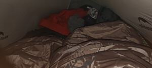 睡袋保暖,睡觉舒适,就是收纳体积有点大,包小了放不进去