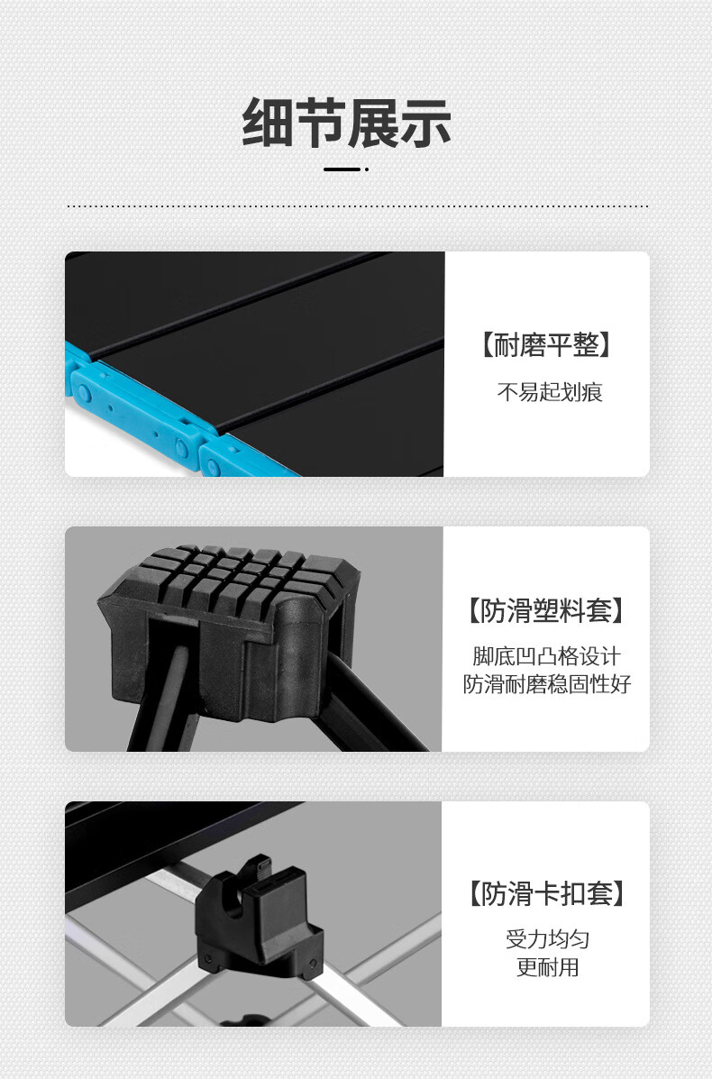 Guide Series户外铝合金折叠桌露营桌便携升降沙滩烧烤桌加宽桌自驾游车载桌 新 加宽金属 木纹黑色