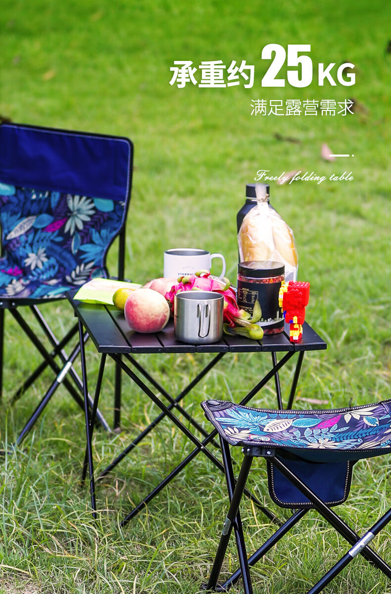 原始人户外折叠桌椅套装露营桌椅野餐椅子便携式野营装备蛋卷桌 小号磨砂黑-加厚款【1-2人适用】