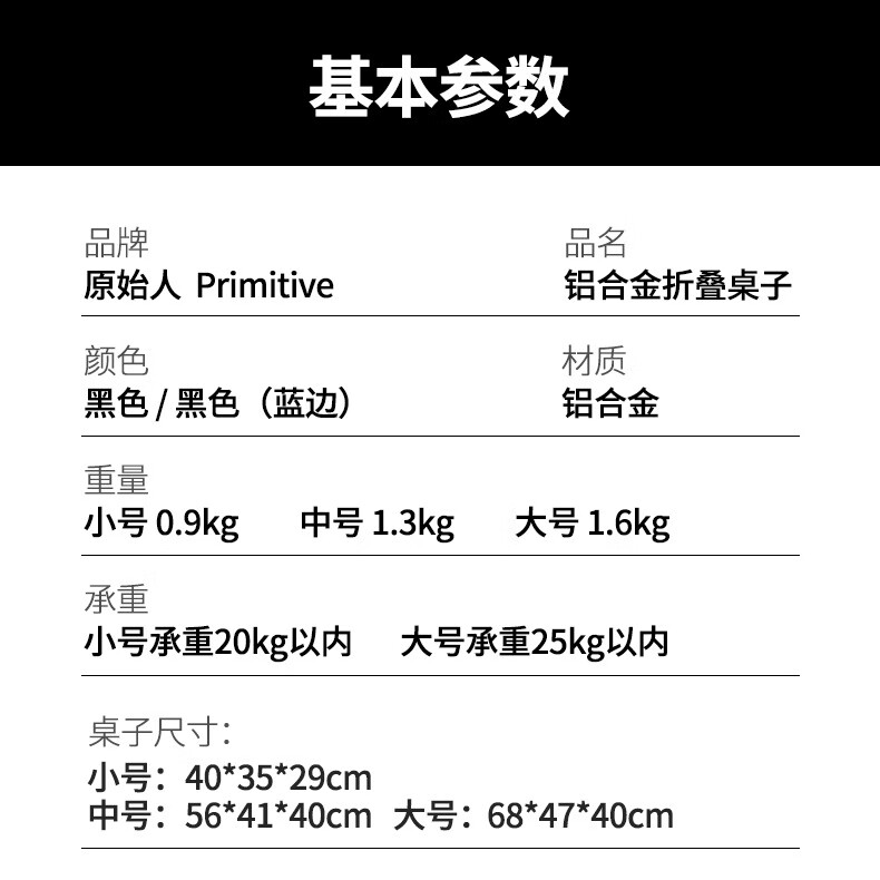 原始人户外折叠桌椅铝合金超轻便携式露营用品大全野餐折叠蛋卷桌子套装 升级款全黑-小号配收纳袋