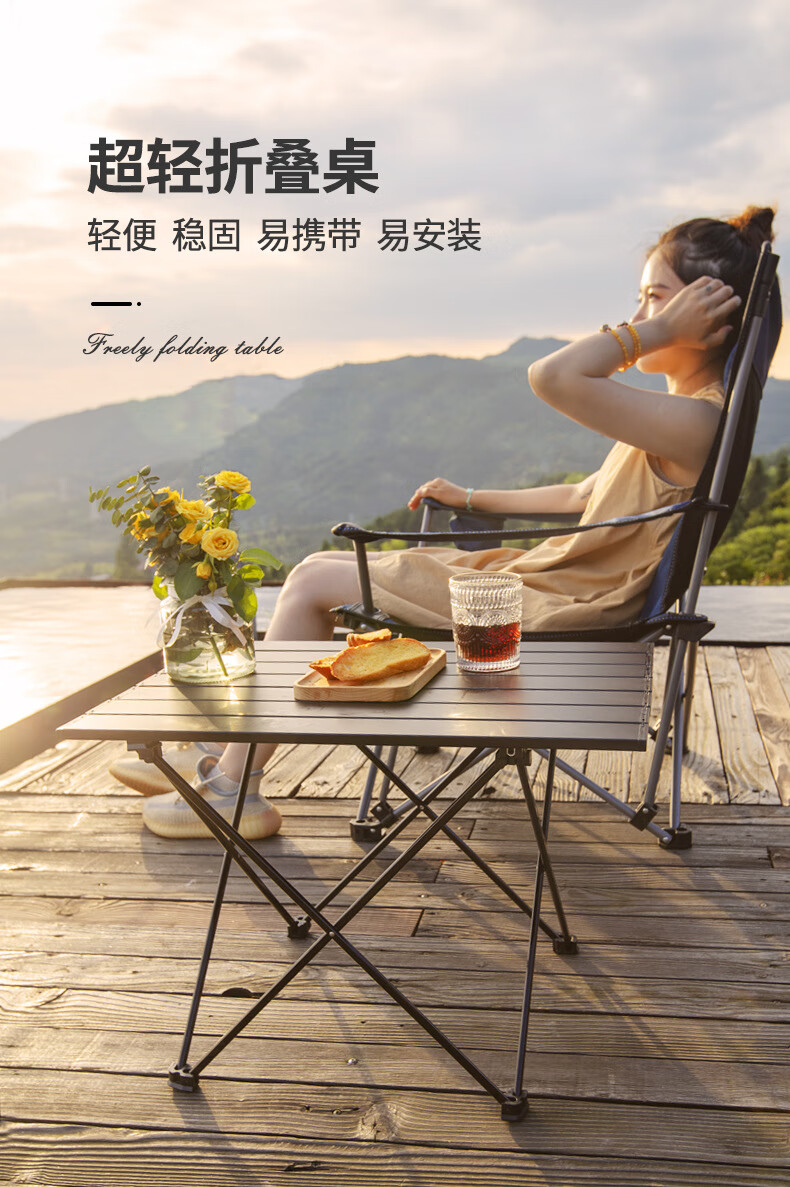 糜鸿(MIEHONE)【磨砂面板】户外折叠桌野餐桌 便携式防泼水易清洁露营蛋卷桌子 黑色[磨砂面板小桌]