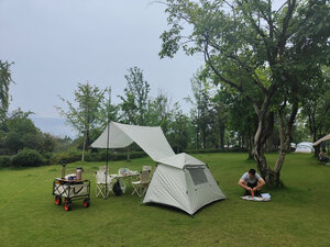 买了整整一套装备,帐篷,天幕,小推车,桌子,椅子,正好利用好天气出来露一下营,总体还是不错的,比较方便,三四个人刚好合适,只是天幕有点小,又买了一块大的天幕😂