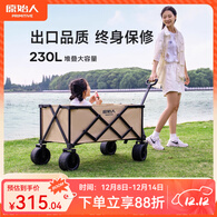 原始人户外露营折叠推车营地车手拉拖车野餐野营拖车遛娃便携买菜小拉车 420L 咖色-万向轮+可后开+桌板