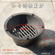 山头林村老式碳火炉炉户外室内便携式铸铁炉生铁炉子烤火取暖烧烤肉 13.5CM内炉栅