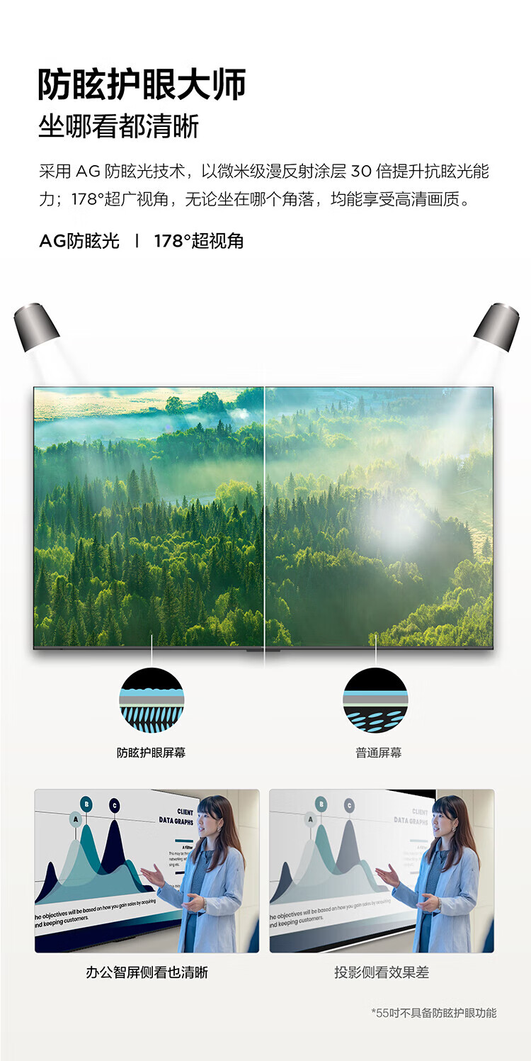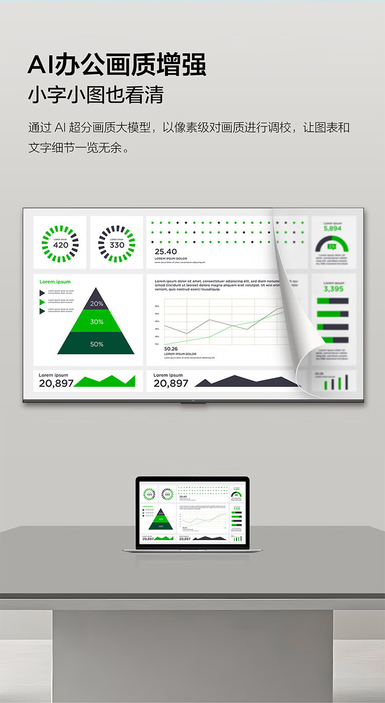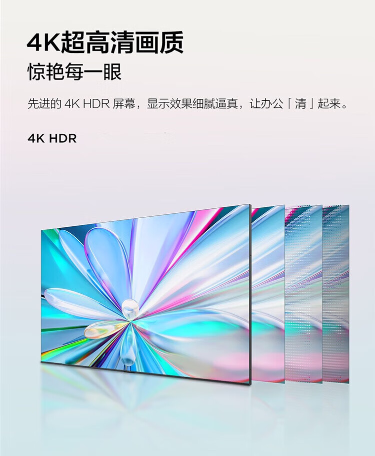 清晰度很高,窄边框,视觉效果非常好,运行流畅,自带的投屏器非常方便,办公使用非常合适,大品牌值得信赖。