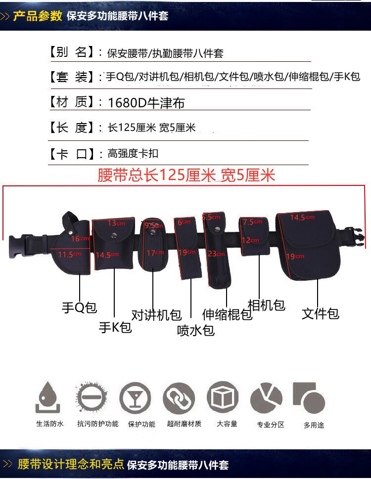 重虎保安执勤腰带用品安保巡逻牛津布战术腰包装备 多功能腰带八件套