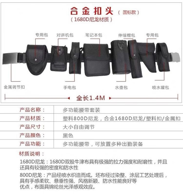 多功能尼龙战术巡逻执勤保安八件六套安保装备金属扣户外外腰带 塑料扣八件套腰带全套