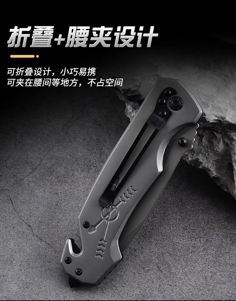 瑞士折叠刀高硬度锋利开刃荒野求生户外多功能刀具防身随身便携小 灰色进口大马士革钢