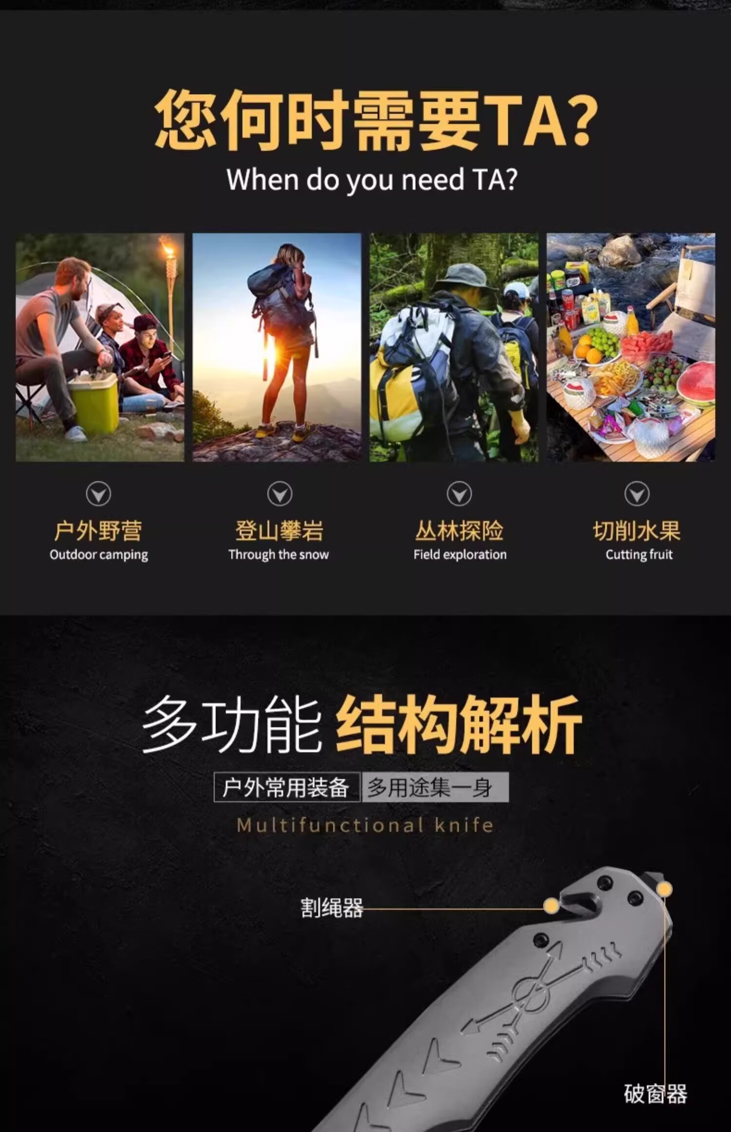 户外生存折叠刀高硬度锋利多功能便携式露营水果刀冷兵器防身小刀 DA75重型折刀 60°以下 9.8cm 12cm