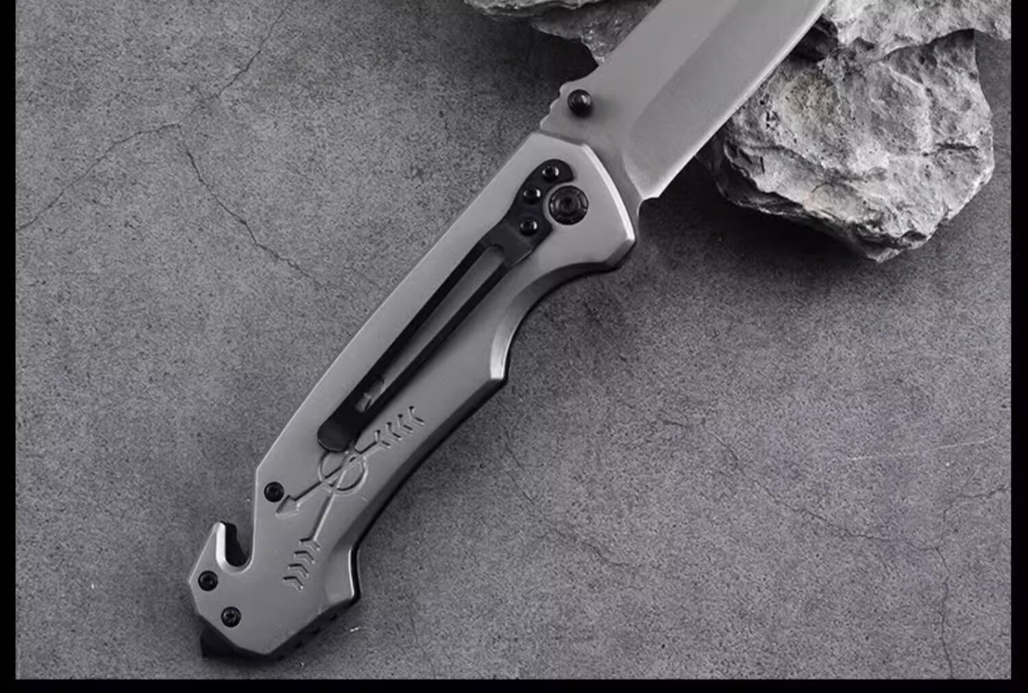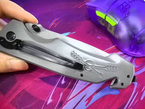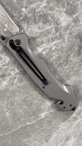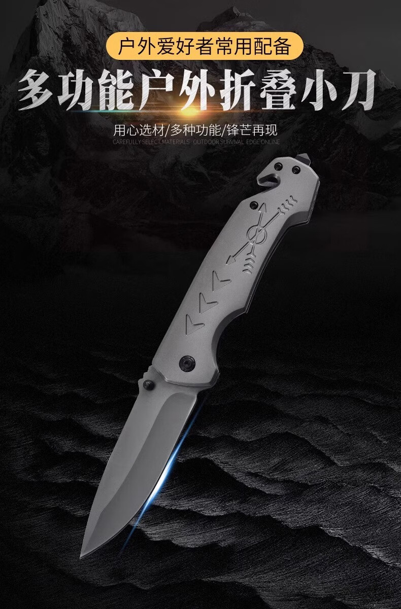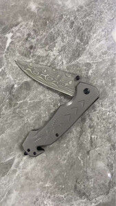 刚沃户外多功能机械折叠刀高硬度锋利小刀随身野营刀具防身野外生存刀 【灰钛】利箭大马士革纹折叠刀