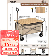 原始人(The Primitive) 露营推车可折叠户外手推野餐车营地拖车遛娃拉杆小拉车桌板野营 150L 加厚款卡其+可折叠桌板