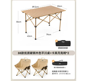 原始人(The Primitive)户外折叠桌椅便携蛋卷桌露营桌椅便携野餐桌子野营用品装备套装 木色【长桌】+月亮椅*2