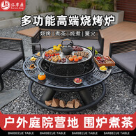 洛摩鼎(loumoding)烧烤炉家用庭院围炉煮茶烧烤架户外柴火灶篝火盆烤火炉桌 【1.2M圆桌】豪华款+起碳套装+大铁锅