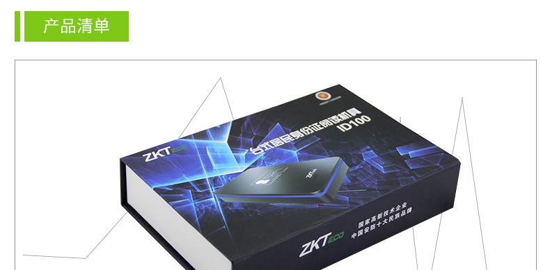 台式居民身份证阅读器× 1 USB数据线 × 1 用户手册× 1 安装光盘 × 1 光盘产品合格证及保修卡 × 1