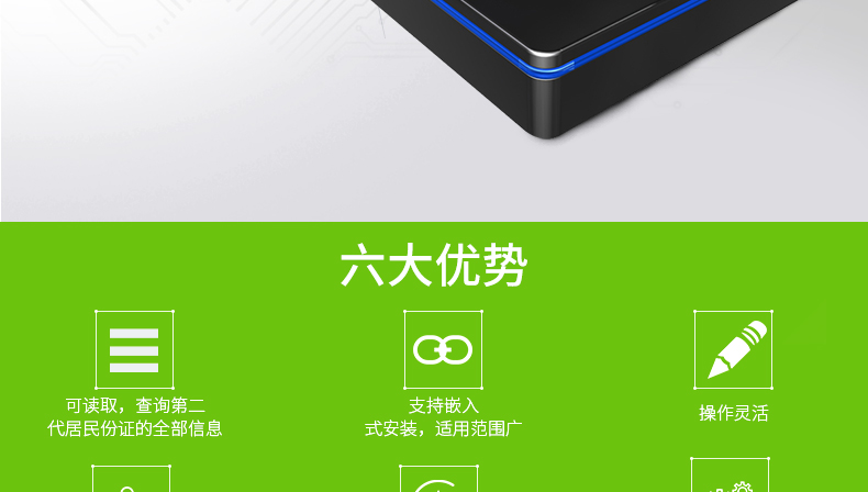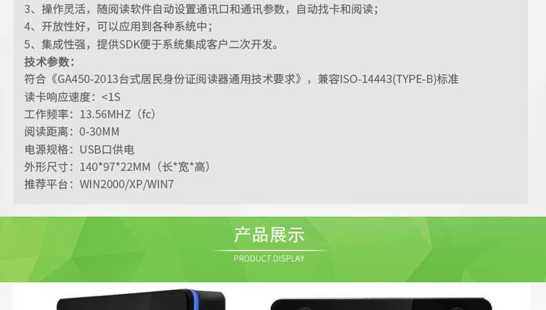 这款身份证阅读机具自己是购买的第二部了,反应速度快,其配套的软件也比较完善,识别,查找,保存都非常好用便捷,机器本身的颜值也不错,读卡时有提示音和LED灯的颜色变化,十分炫目,非常不错,价格也实惠!