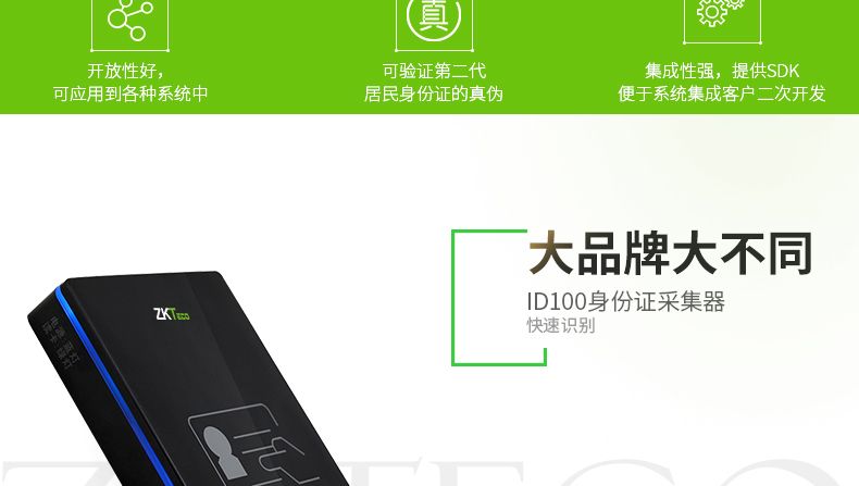 熵基ZKTeco/熵基科技ID100居民二三代身份证读卡器阅读器扫描仪器身份证采集器识别器 ID100 标配