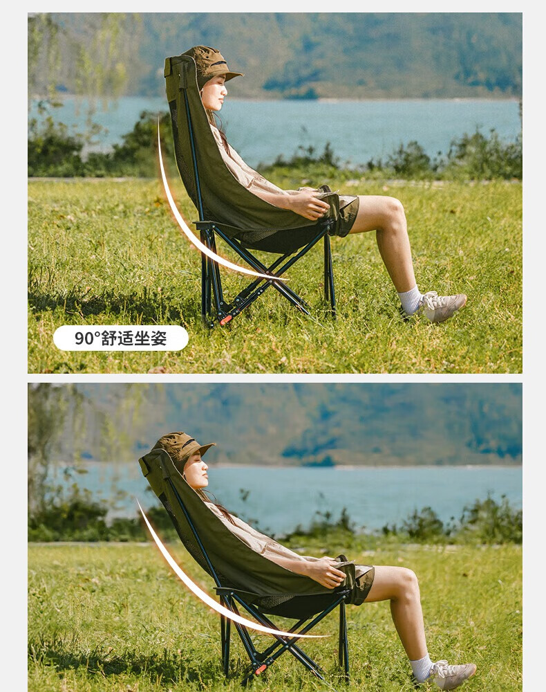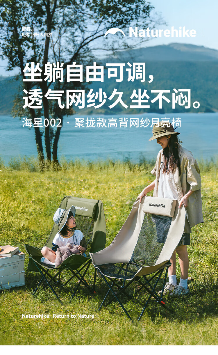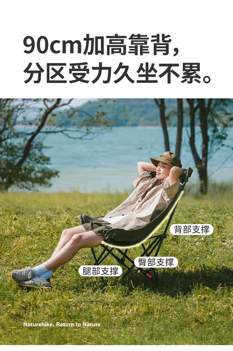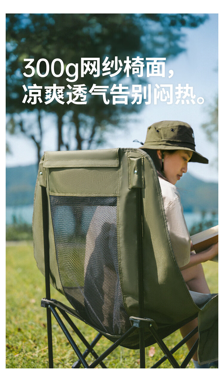 NatureHike挪客户外折叠椅高背网纱月亮椅露营可调便携钓鱼椅野餐坐躺椅子 徒步绿/网纱透气款
