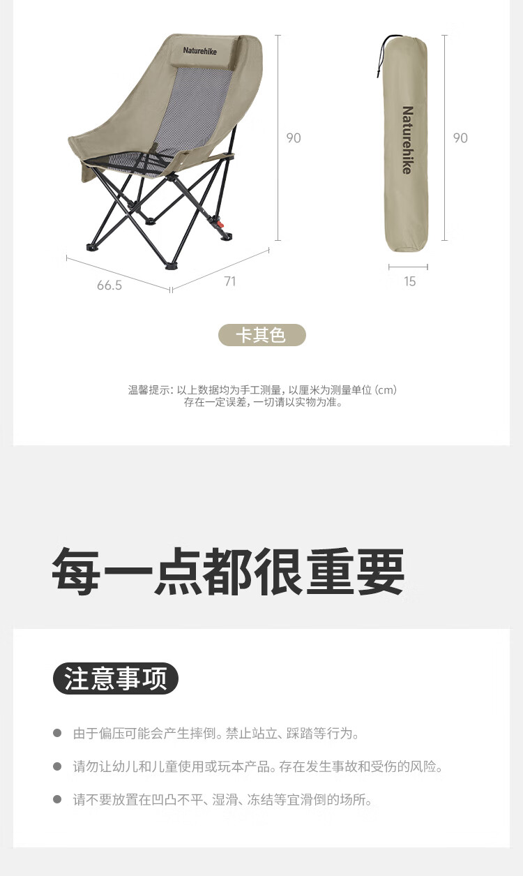 Naturehike挪客海星聚拢款高背网纱月亮椅春夏款户外露营钓鱼折叠椅可坐可躺 卡其色/单人款