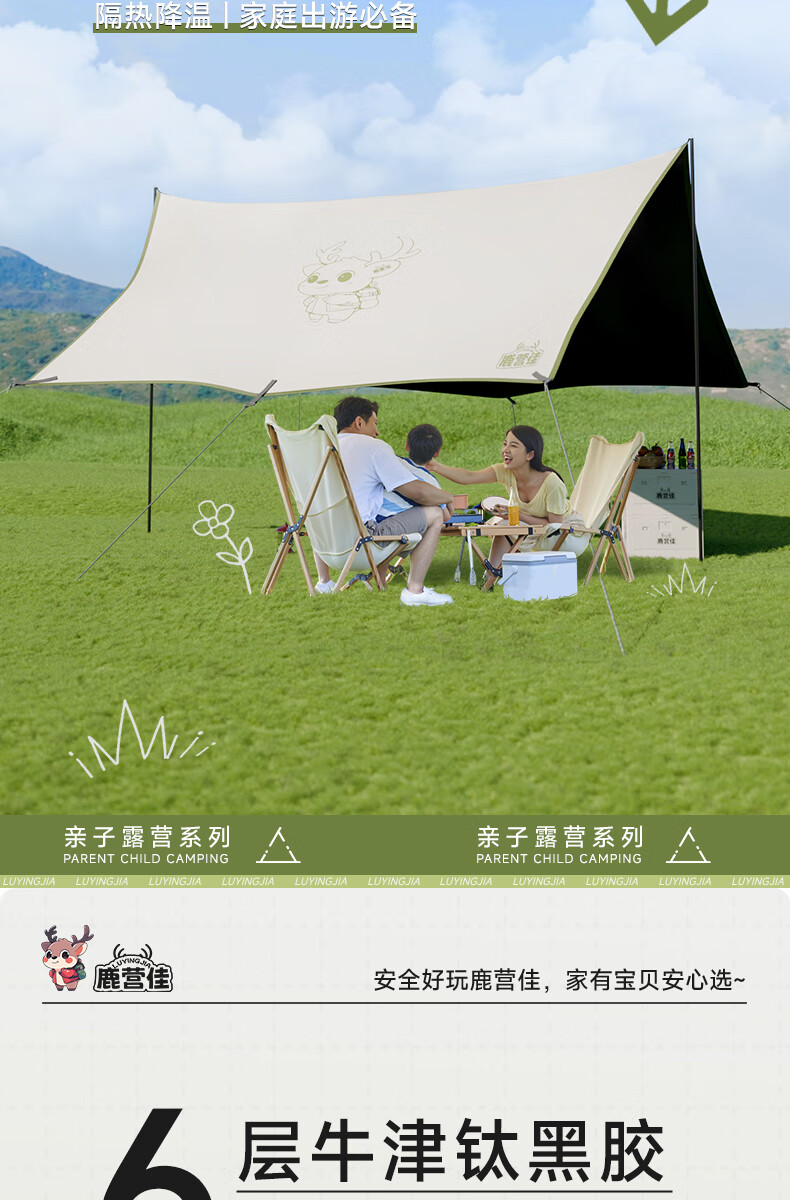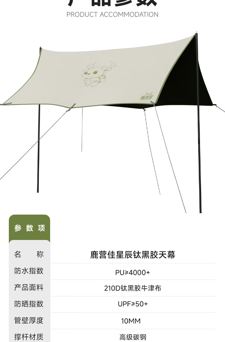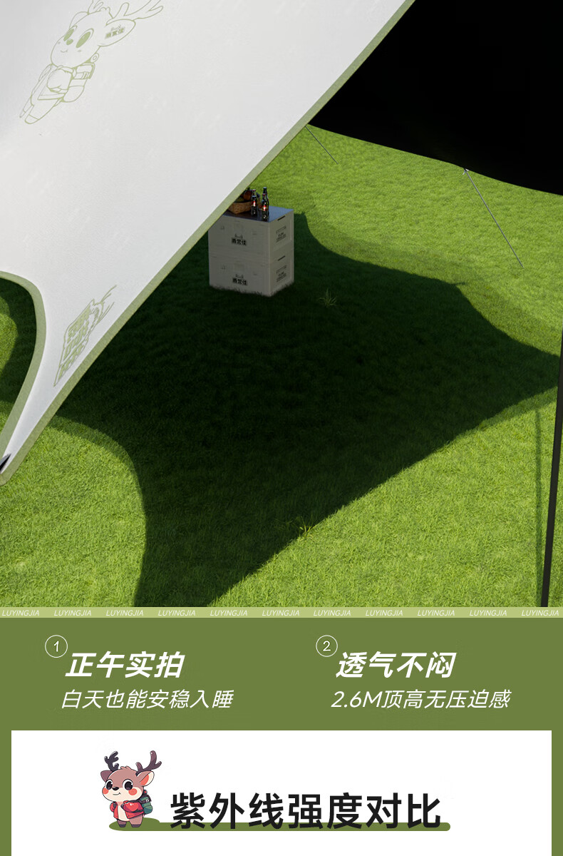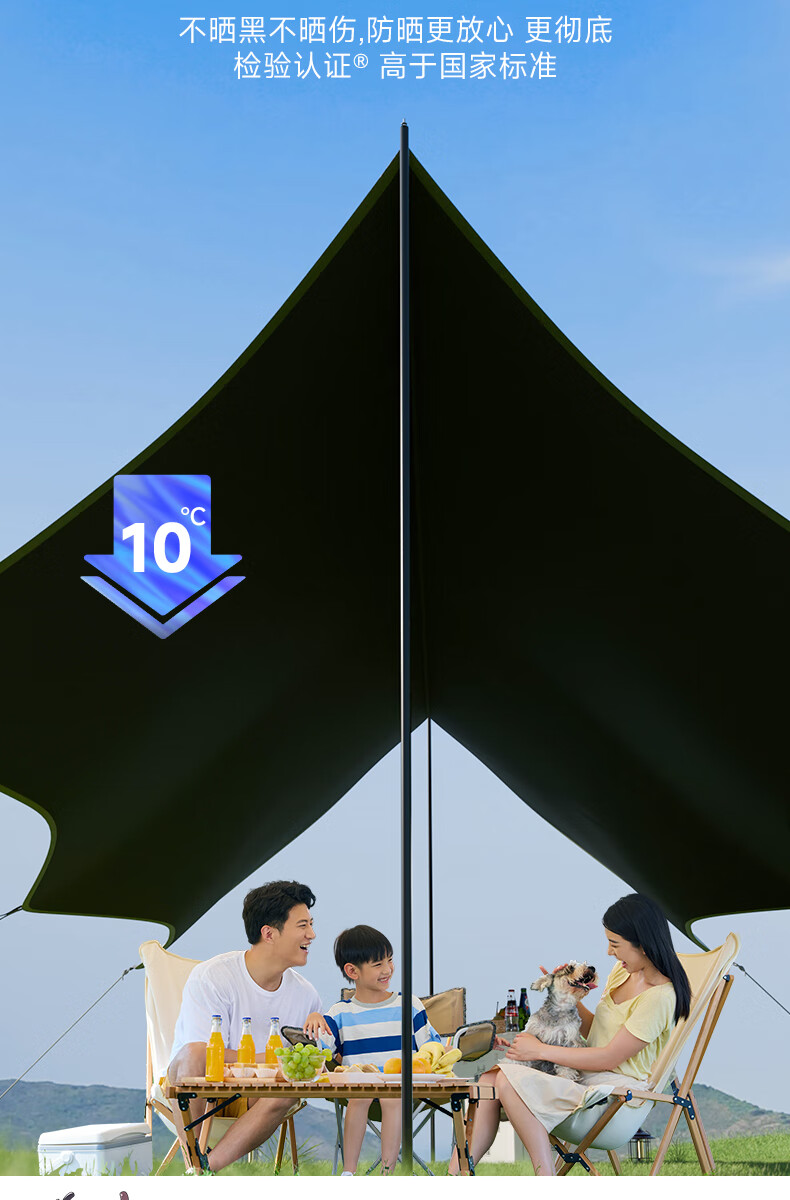 鹿营佳星辰天幕户外钛黑胶专业防晒沙滩遮阳棚露营装备遮阳伞防雨水天幕 8角28平方