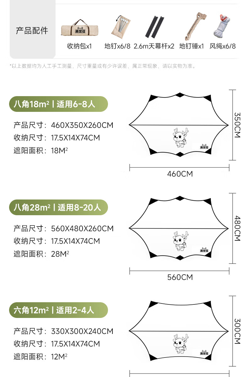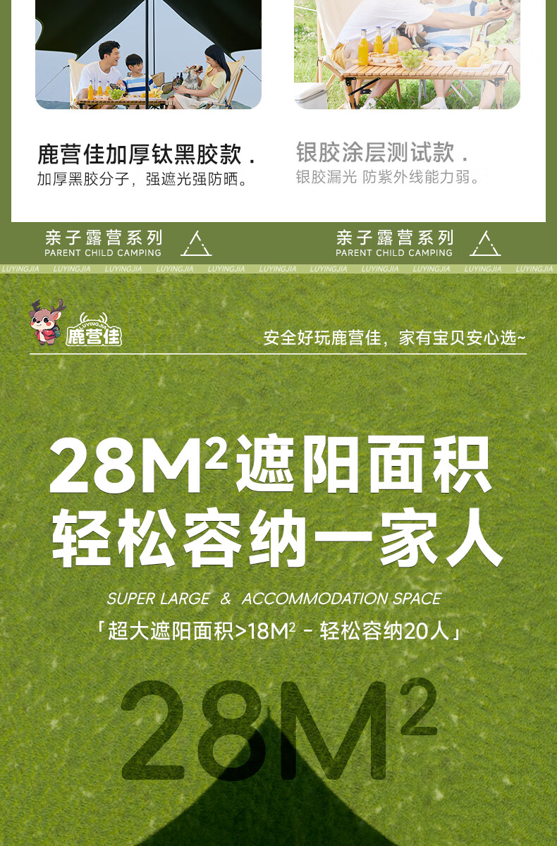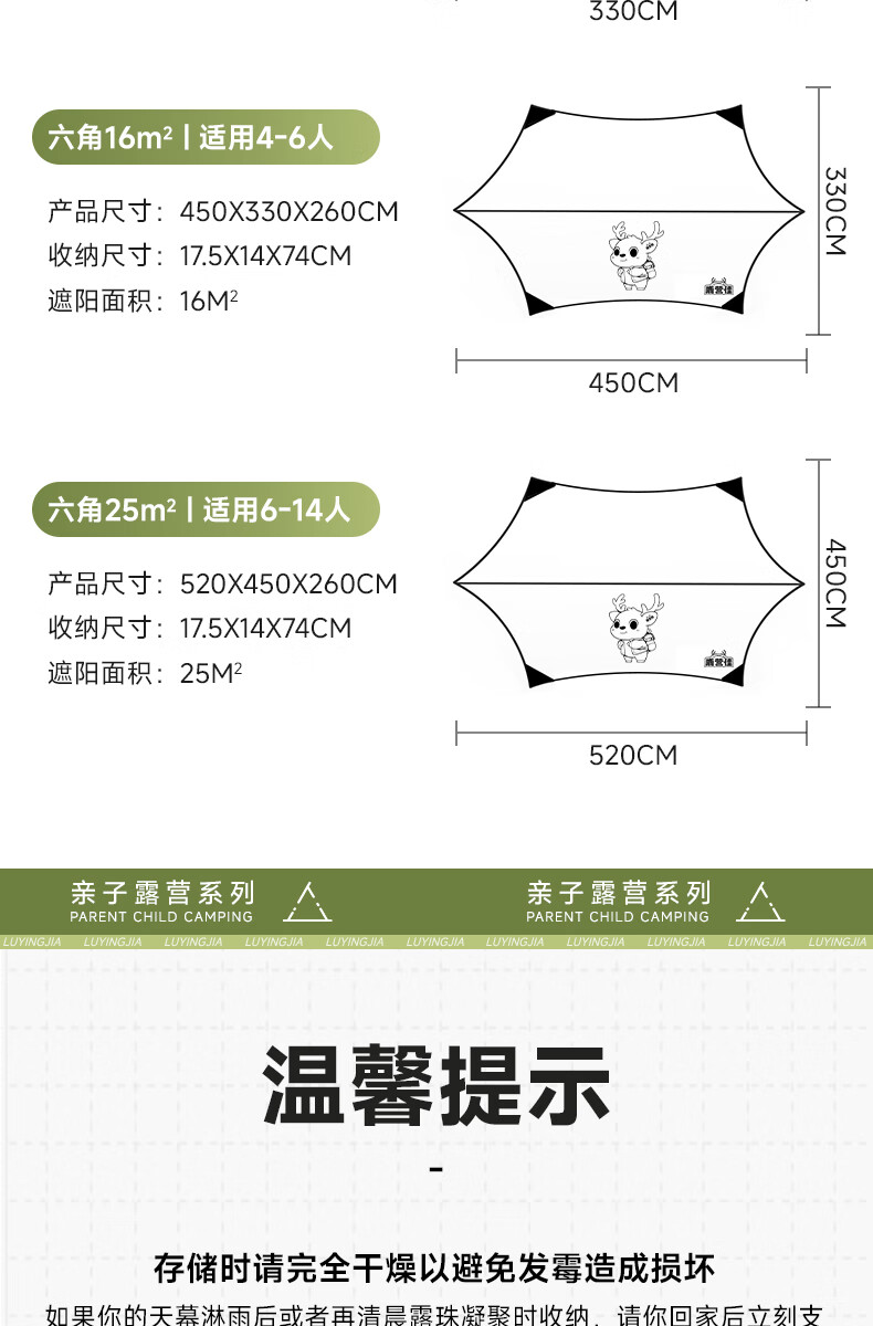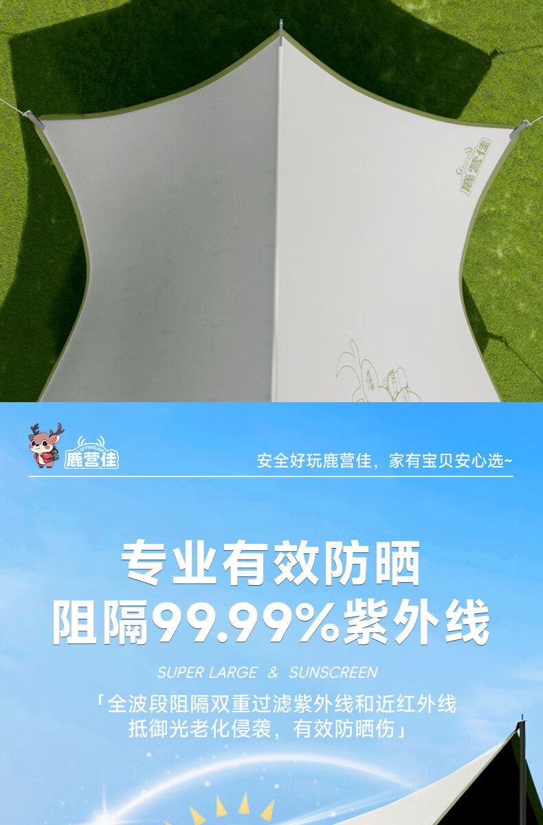 鹿营佳星辰天幕户外钛黑胶专业防晒沙滩遮阳棚露营装备遮阳伞防雨水天幕 8角28平方