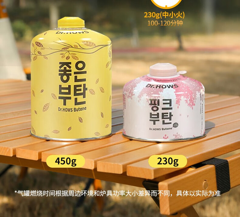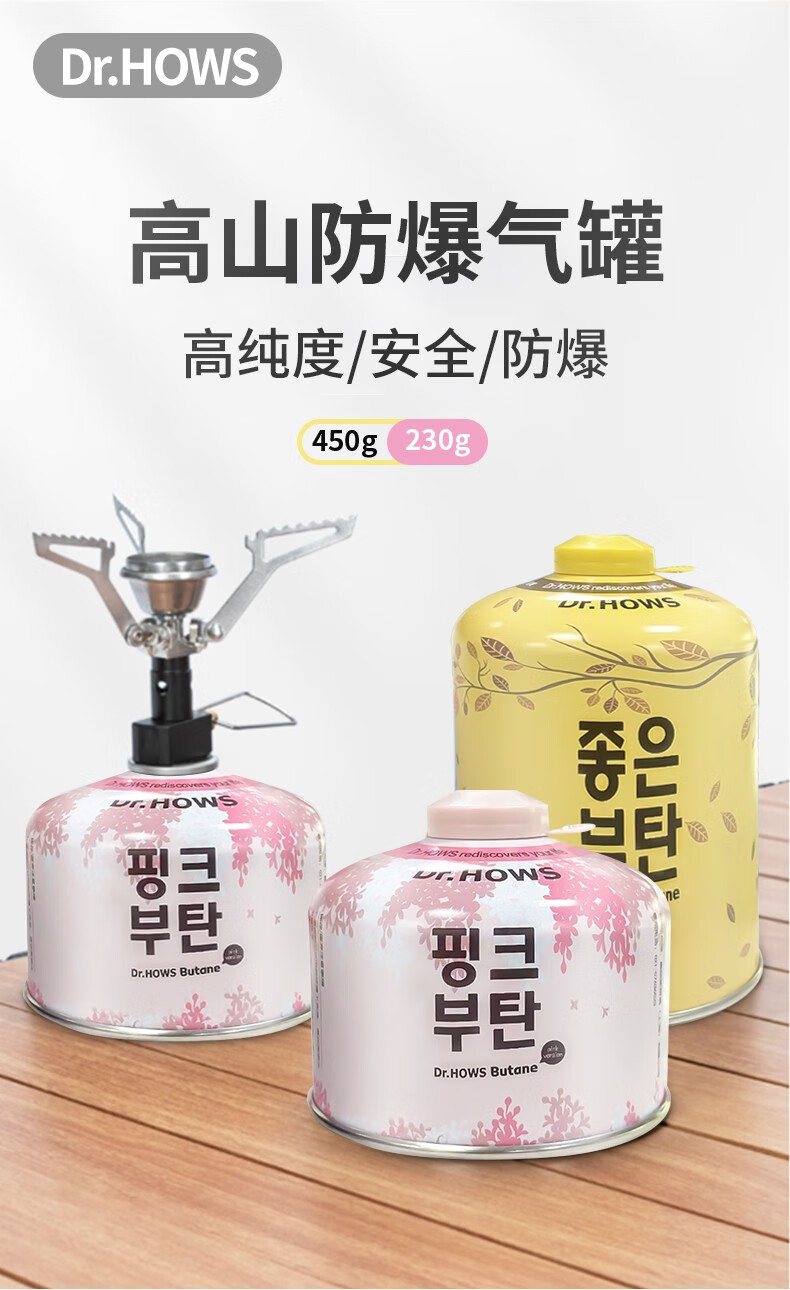 Dr.HOWS韩国户外便携式高山气罐高颜值卡式炉气罐家用聚会野餐用品 高山黄230*6