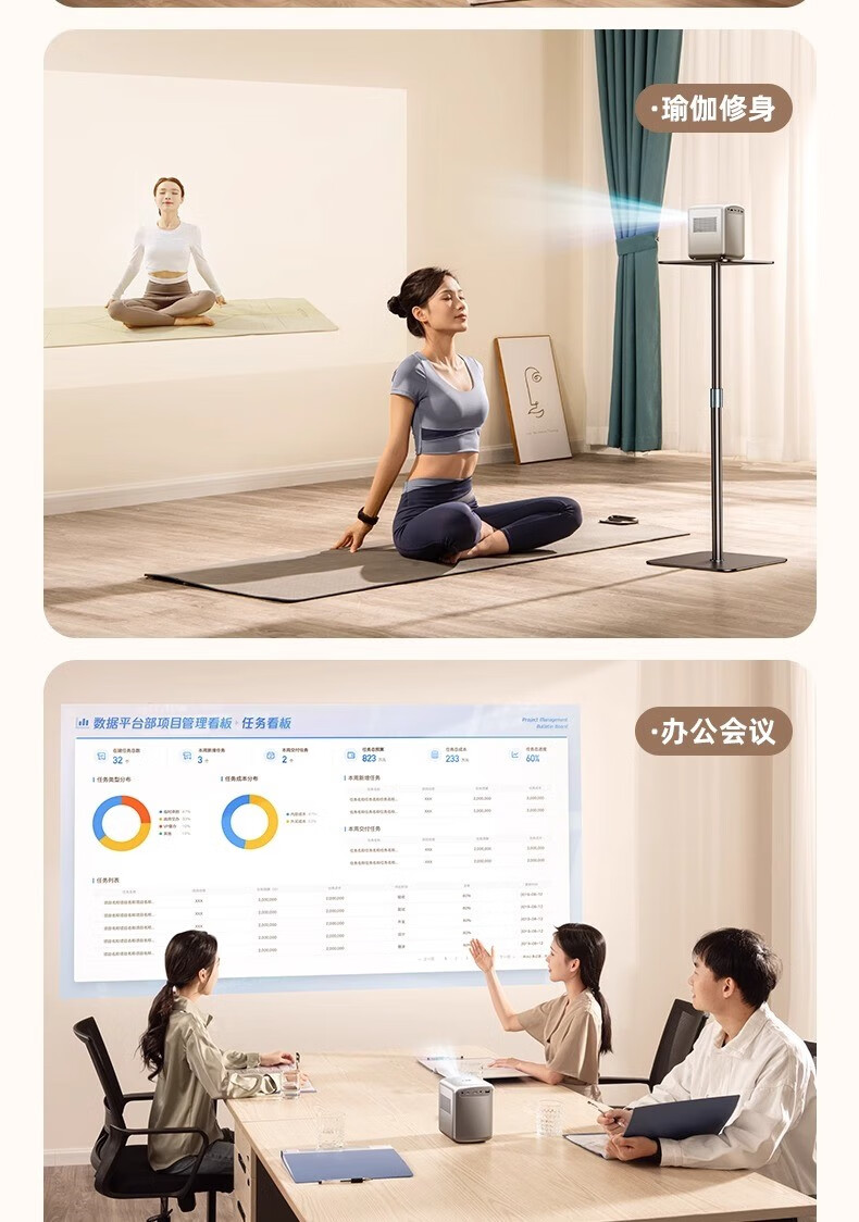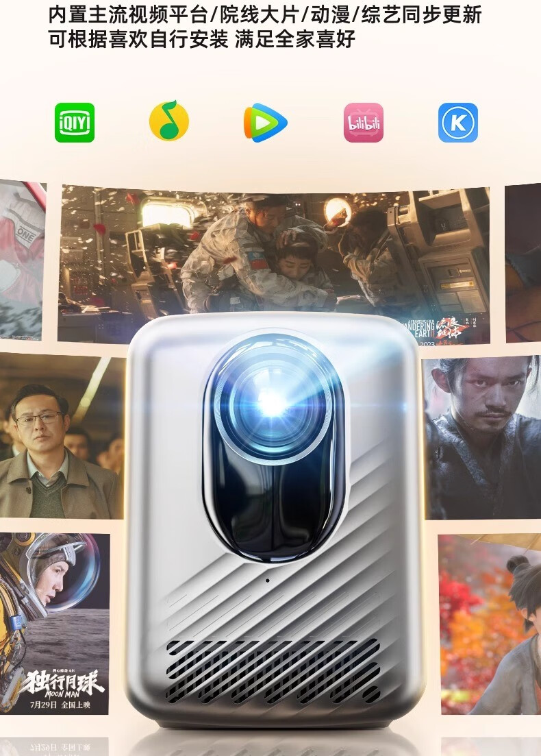 京东京造投影仪家用国家补贴放映一体机音响高清带云台支架高清投屏办公家庭影院室内外投屏器放映机I22