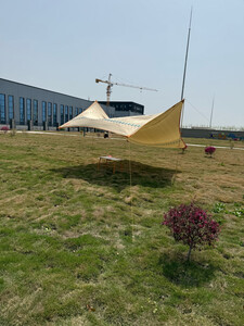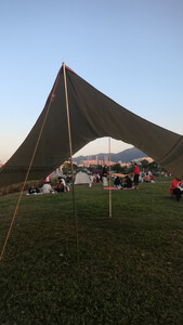 天幕覆盖范围广泛,搭建简便。我们今日使用天幕,度过一天,未出现倾倒倾斜。适合在草坪地露营,容纳8至10人,天幕舒适,躺卧于下方,感受微风,体验极佳,便携性极佳,可以将整套露营设施收纳到箱子里。
