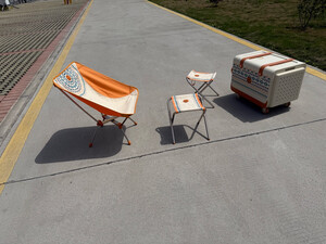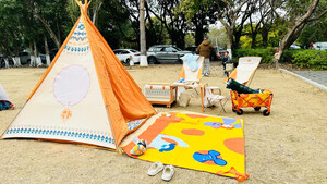 颜值很高,收纳也很方便,全部收在一箱中,再加上一个穹顶,配齐一套完整的野餐露营地设备,成为一道亮丽的风景,吸引了很多人前来询问。