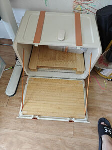 箱子,桌子,椅子都是折叠的,挺省空间的, 就是组装起来有点不容易,小马扎有些变形,钢管很难拼进去
