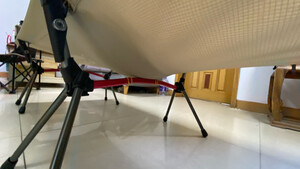 产品包装不错,颜值也不错,日间或者自驾途中偶尔小憩一下还是不错的。整体比较轻量化,搭配无地布的印第安帐篷使用。 组装还是比较容易,比较担心布面的耐久性,使用时间长了,应该会塌陷比较多,这个有待日后再验证。