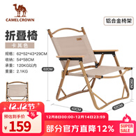 CAMELCROWN户外露营轻便携折叠椅阳台休闲钓鱼椅子野营装备野餐克米特 卡其(铝合金经典版) A1W3GT101-2