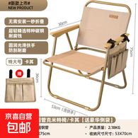户外折叠椅子耐用克米特椅便携超轻沙滩露营装备野餐马扎钓鱼凳子 特大号卡其+豪华侧袋