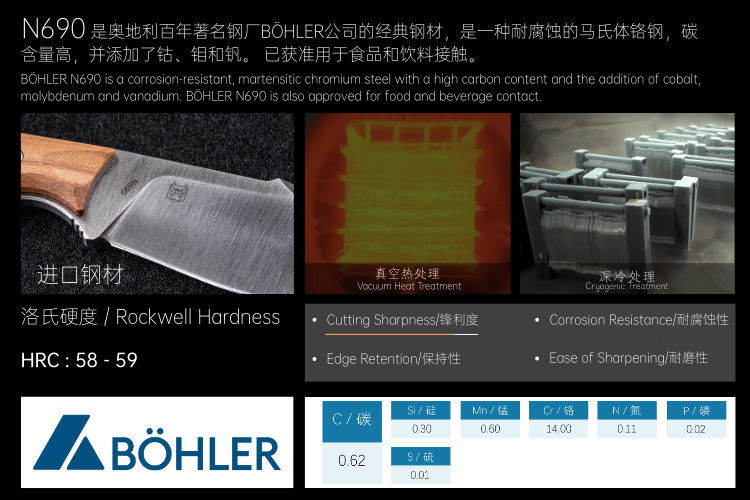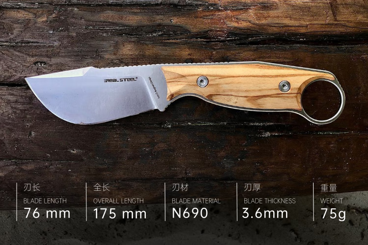 锐狮帝Realsteel Bushcraft Scandi/FFG 户外 刀 丛林 龙骨 刀胚 14C28N 大平磨