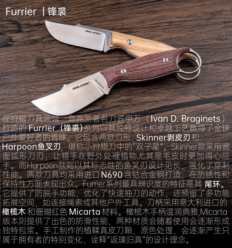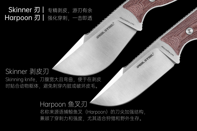 锐狮帝Real Steel 《Furrier-锋裘》 小猎/剥皮刀/鲸叉刃/户外小直/N690 砂光刃+珊瑚红Micarta