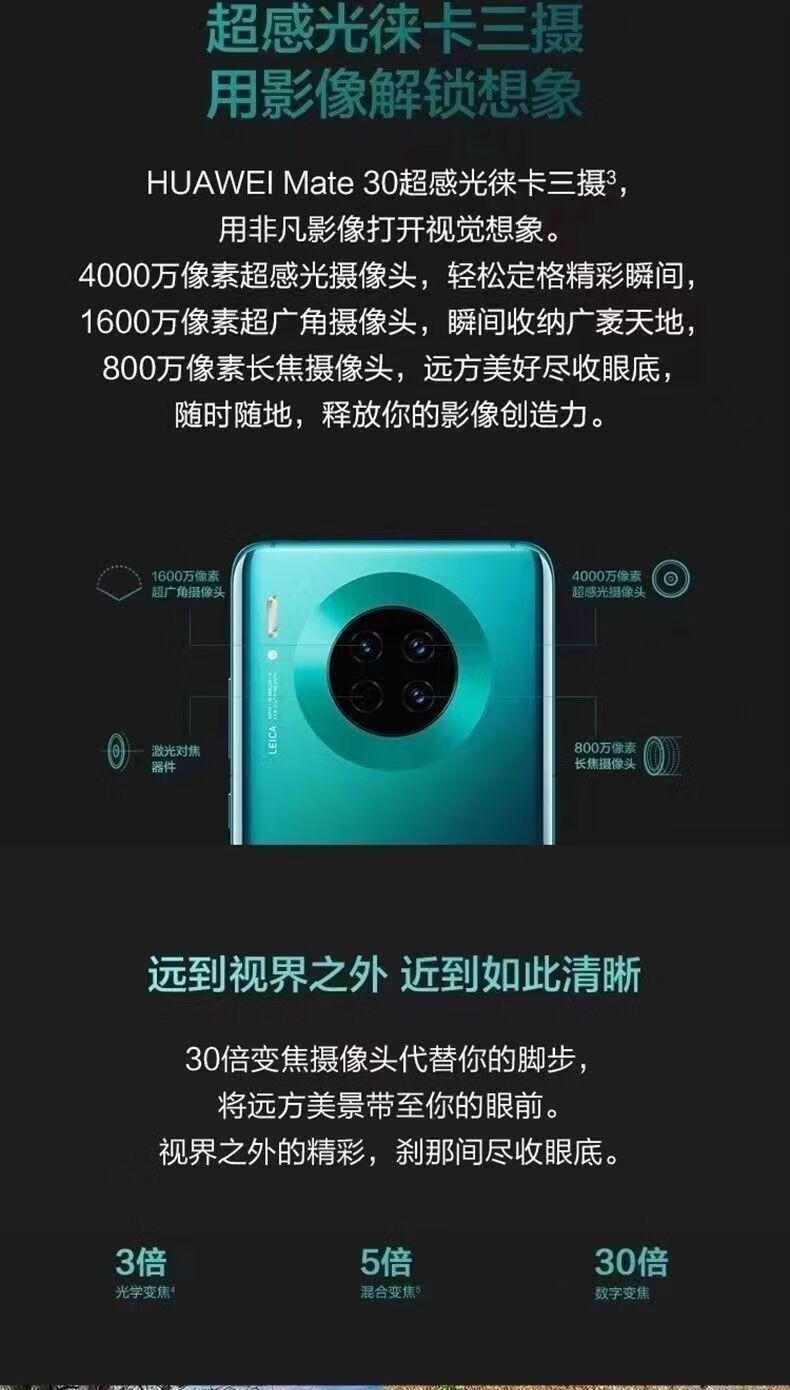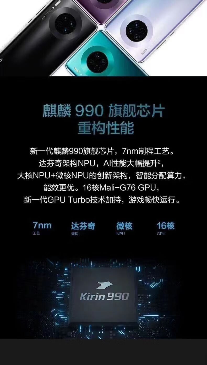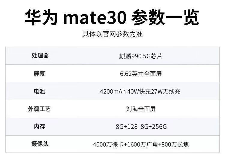 华为(HUAWEI)Huawei/华为 MATE 30 5G通麒麟990处理器便宜智能学生游戏 亮黑色 6GB+128GB x 4G全网通 x 套餐一1